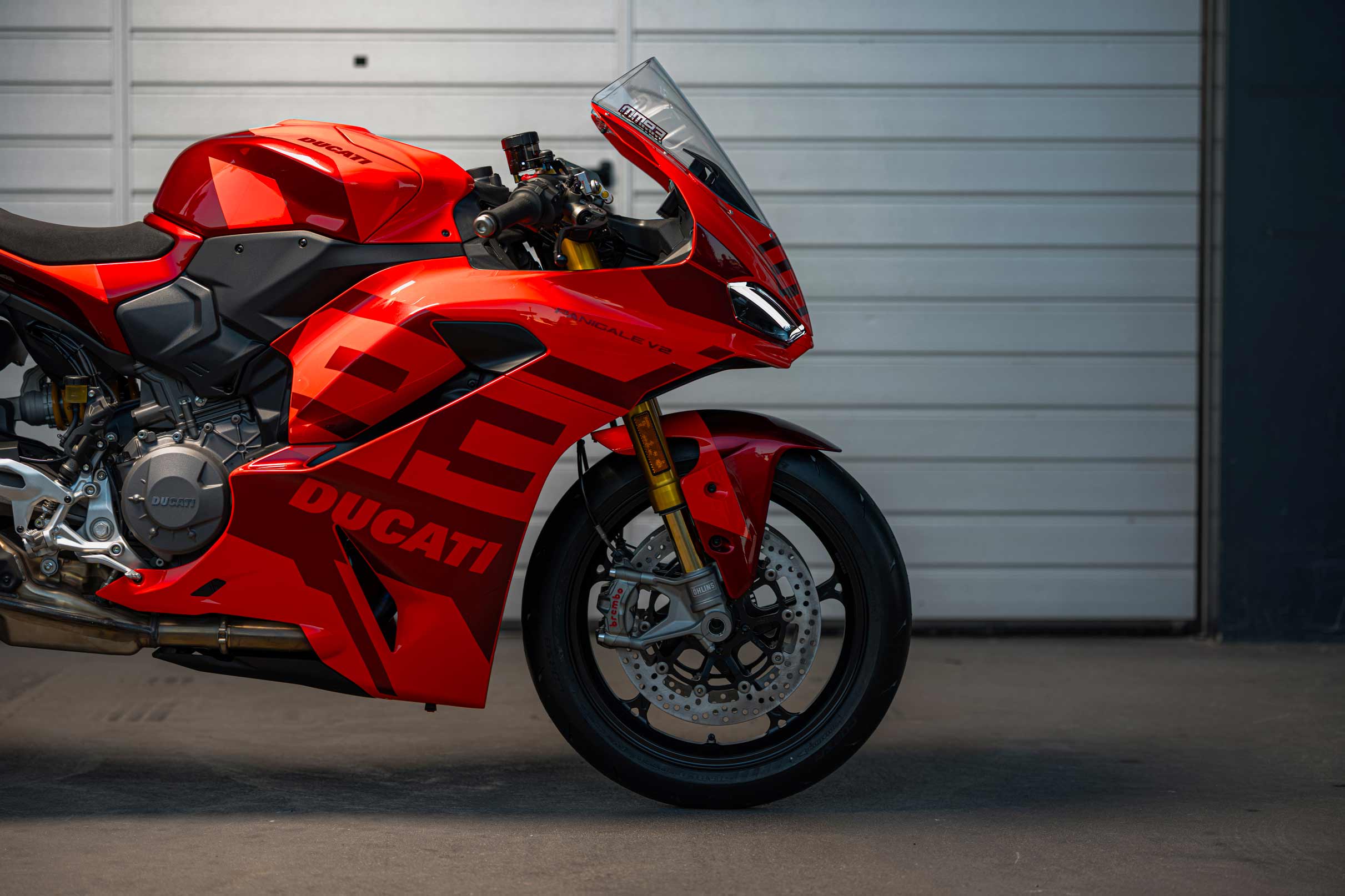 La versión numerada de la moto, personalizada con el número de carrera oficial del piloto, cuenta con un amortiguador de dirección Öhlins de alta gama para una mayor estabilidad y precisión. Esta configuración no solo refleja la identidad del piloto, sino que también garantiza un control óptimo durante las sesiones de entrenamiento de alto rendimiento.