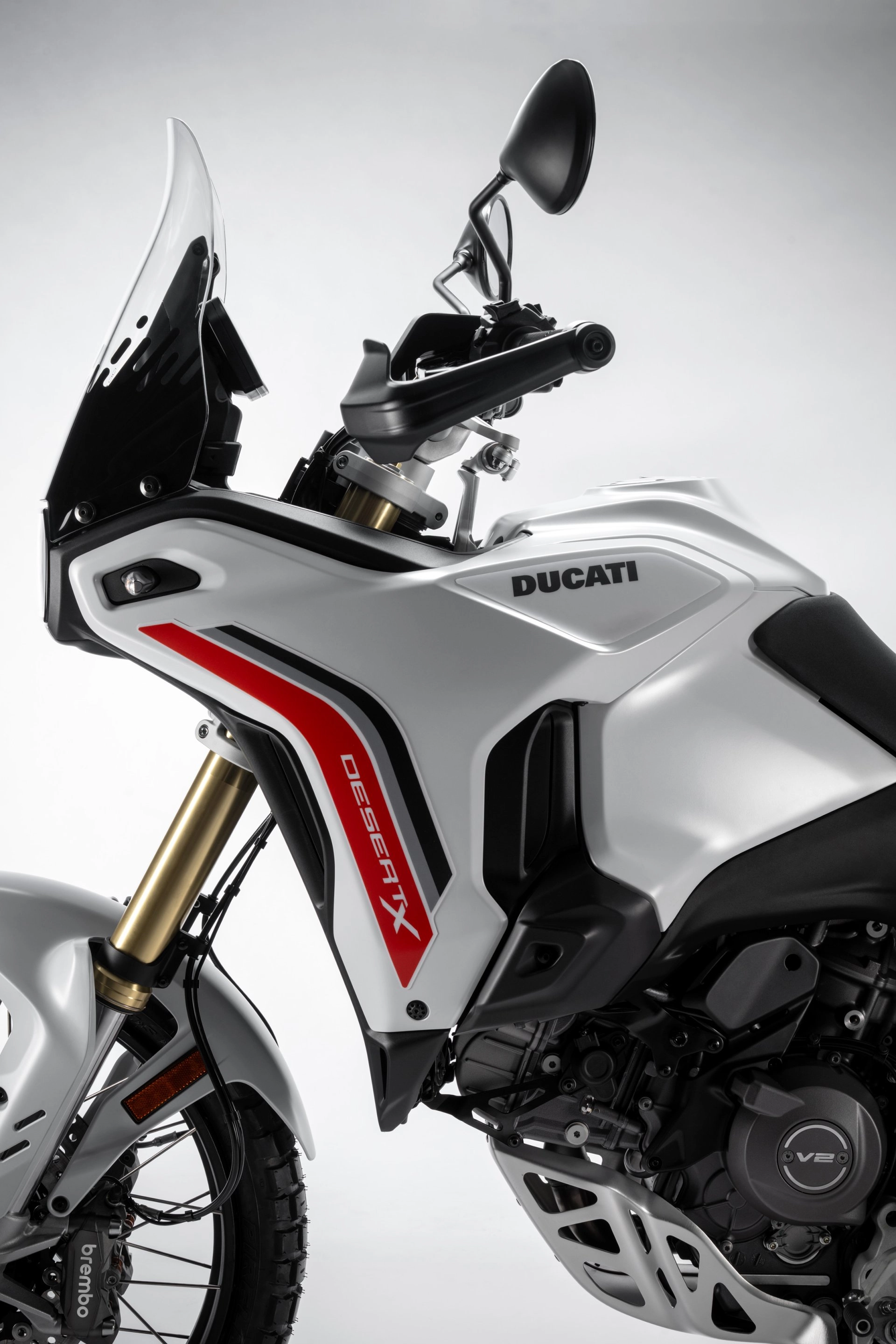 Ducati DesertX V2: La máxima expresión del ADN de competición de Borgo Panigale. Diseñada para ofrecer emociones puras tanto en la pista como en la carretera.